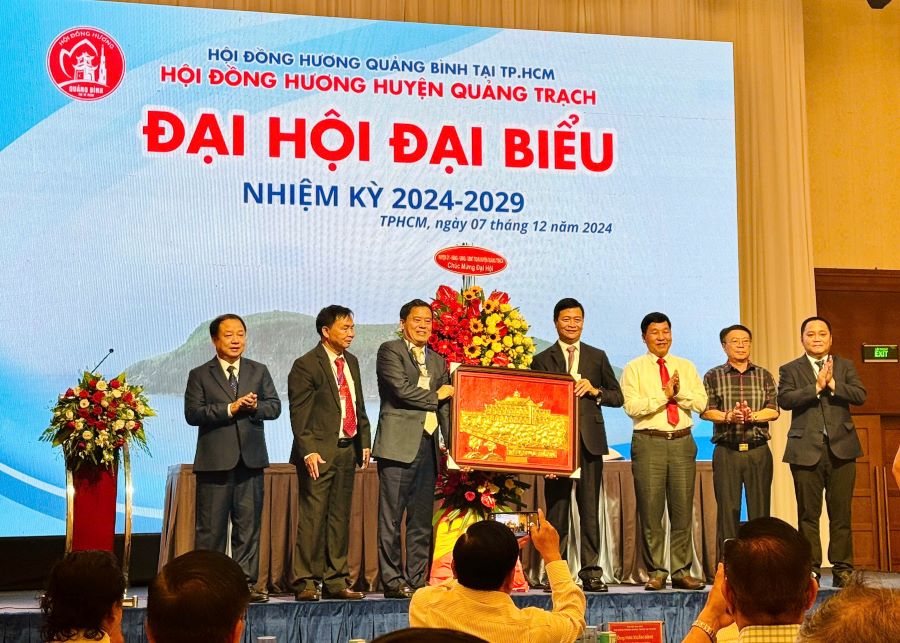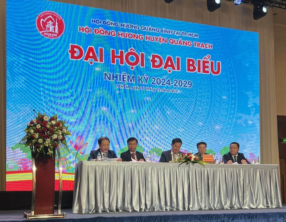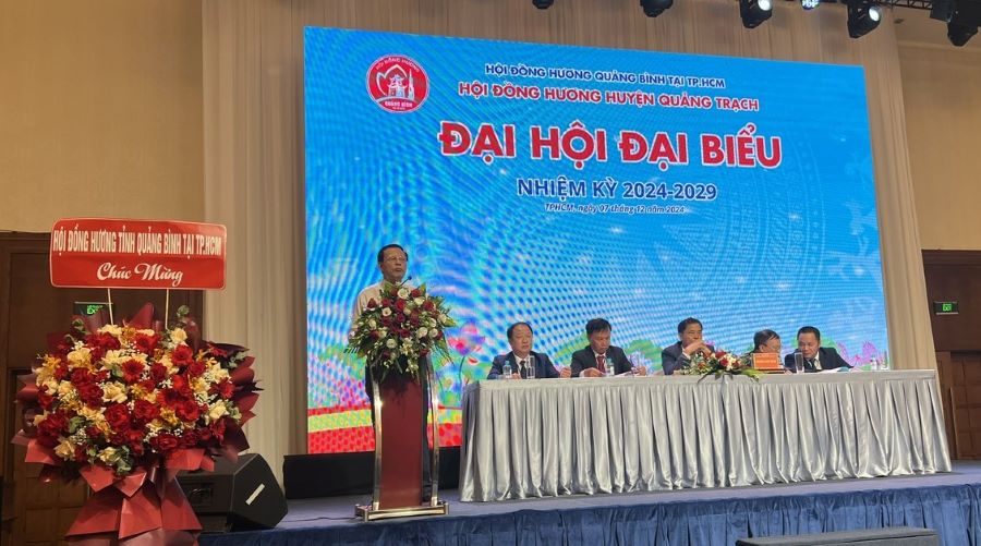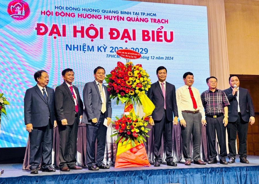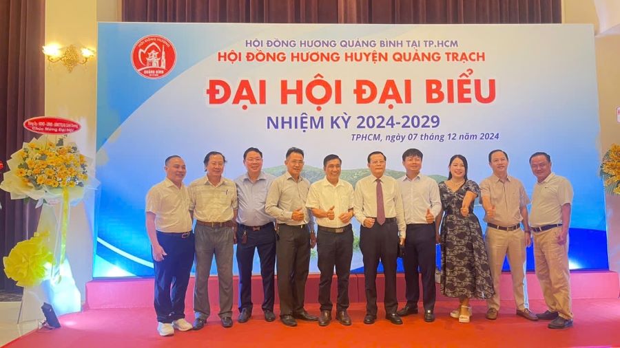 (HDH)- Trong không khí hào hứng, sôi động hướng đến kỷ niệm 80 năm Ngày thành lập Quân đội Nhân dân Việt Nam, ngày 7-12, tại Khách sạn Tân Sơn Nhất, Hội đồng hương huyện Quảng Trạch tại TP Hồ Chí Minh (TPHCM) tổ chức Đại hội Đại biểu Hội đồng hương huyện Quảng Trạch, nhiệm kỳ 2024-2029. Đại hội cũng là dịp gặp gỡ nhân sĩ trí thức, nhà giáo, bác sĩ, luật sư, luật gia, cộng đồng doanh nhân, bà con đồng hương Quảng Trạch đang sinh sống, làm việc tại TPHCM và vùng phụ cận.