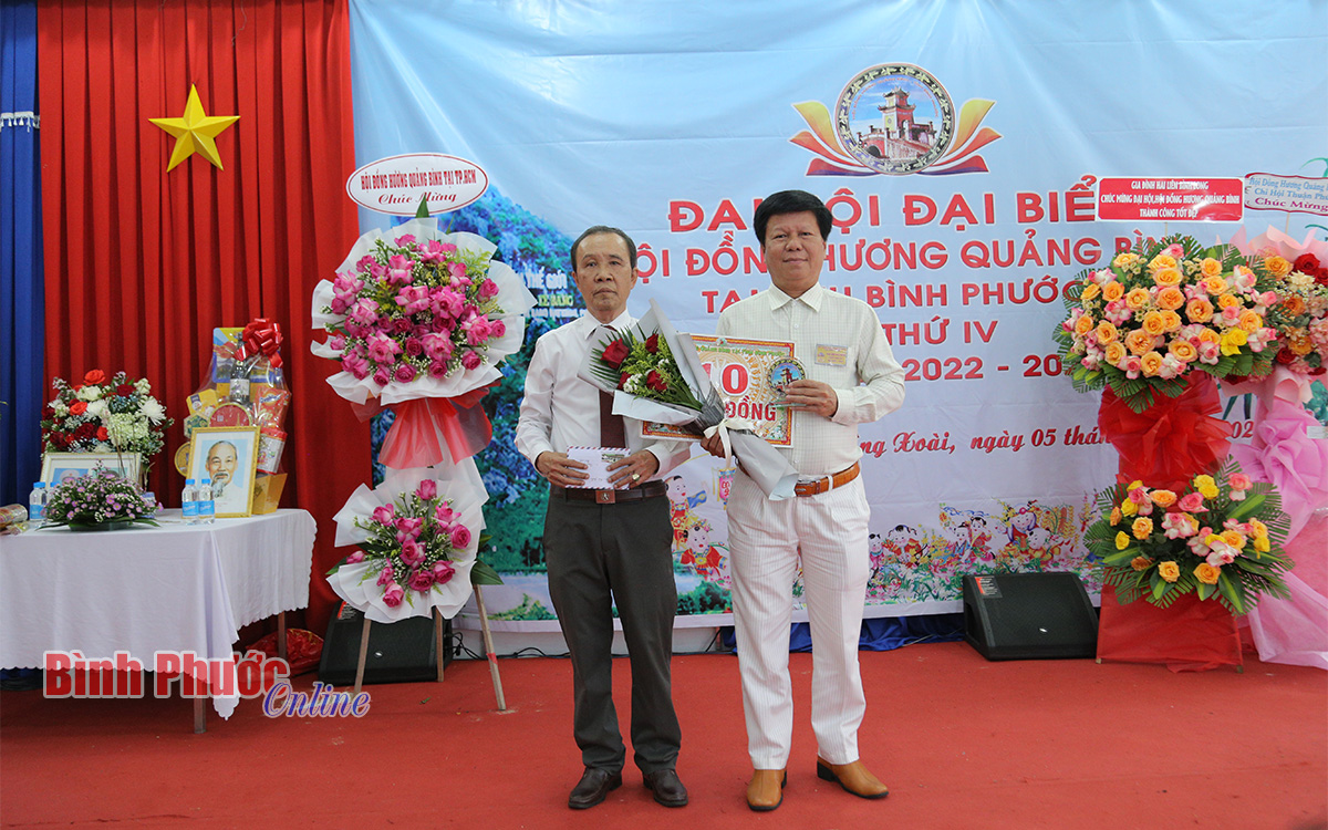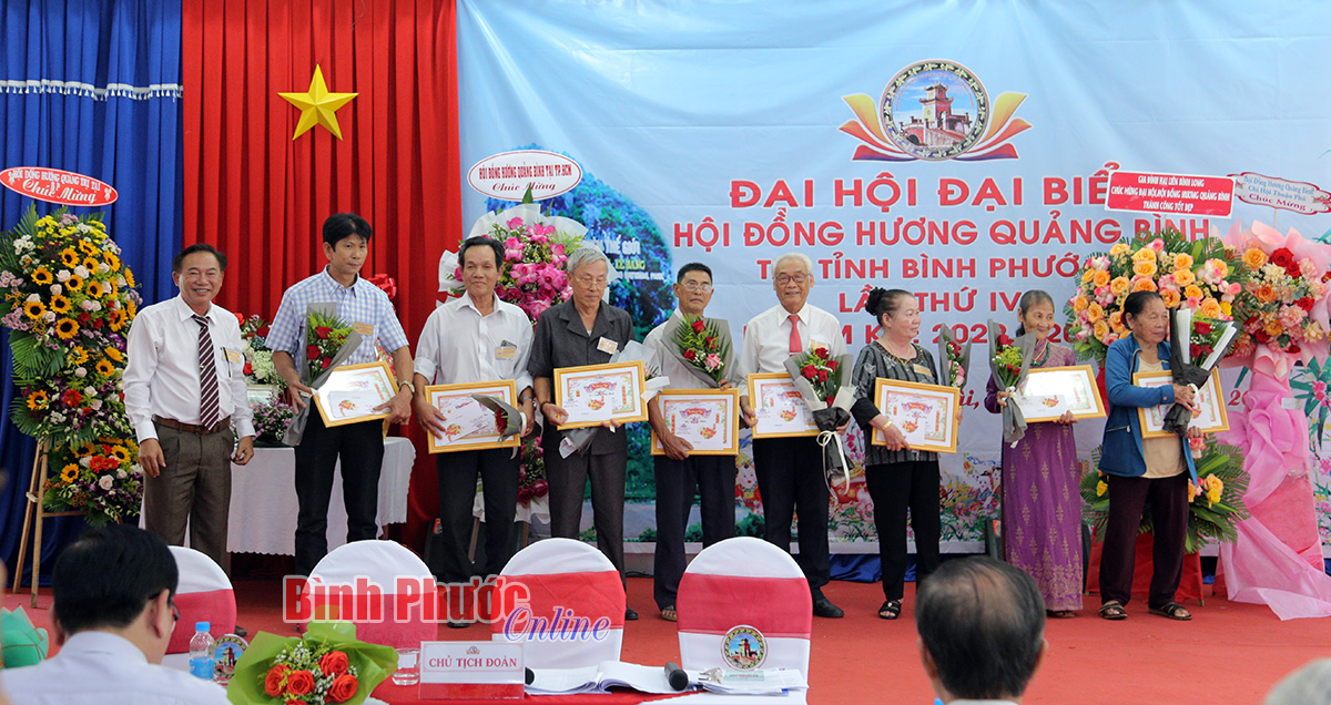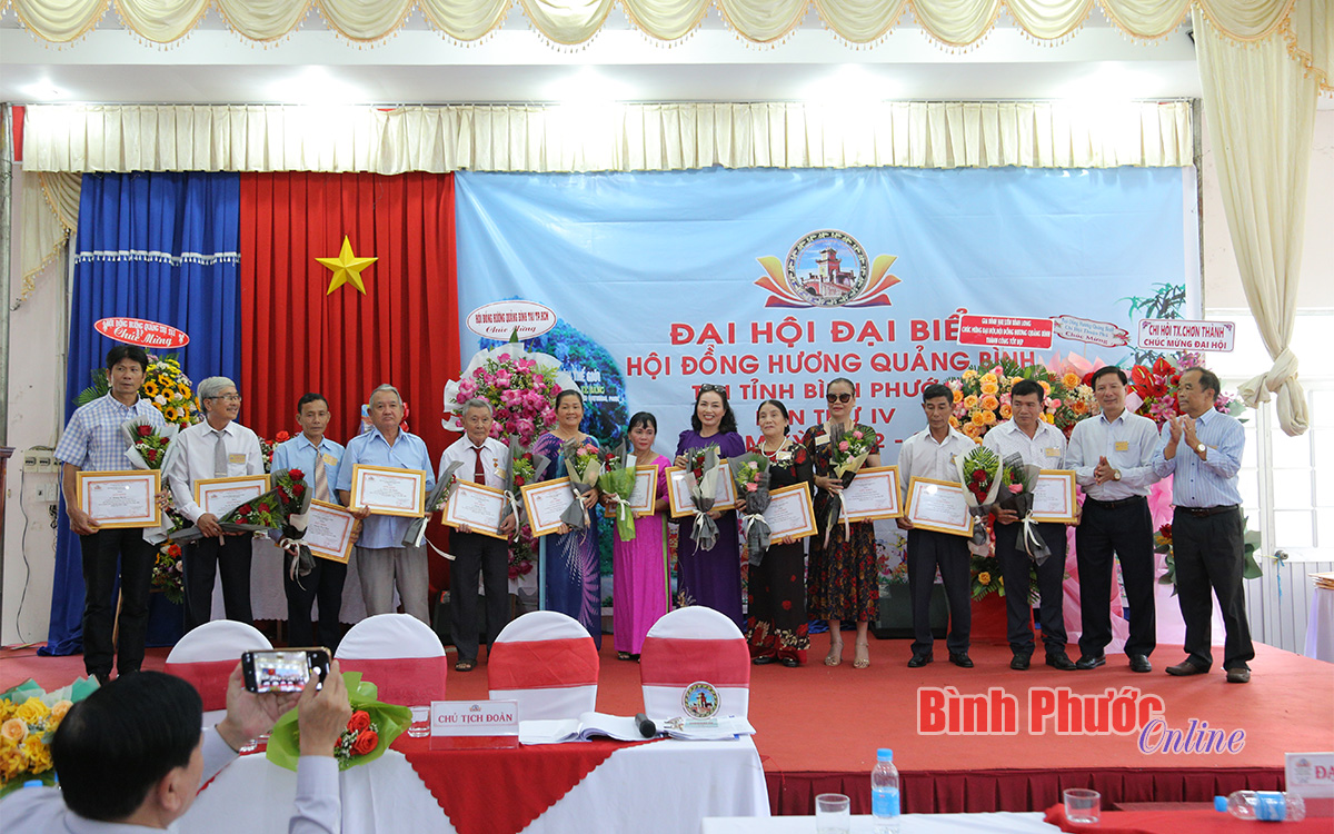Tại đại hội, Hội đồng hương Quảng Bình tại Bình Phước đã khen thưởng các tập thể, cá nhân tiêu biểu trong nhiệm kỳ 2017-2022; mừng thọ các cụ cao tuổi; tôn vinh các nhà tài trợ và phát động ủng hộ quỹ hội.