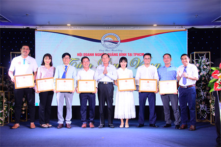 Từ khi thành lập đến nay, Hội Doanh nghiệp Quảng Bình tại TP. Hồ Chí Minh đã tích cực trong công tác an sinh xã hội, từ thiện nhân đạo hướng về quê hương, đặc biệt là những đóng góp của các doanh nghiệp hội viên trong đợt thiện nguyện hỗ trợ quê hương do ảnh hưởng của lũ lụt và đại dịch Covid-19. Biểu dương và ghi nhận những nỗ lực ấy tại buổi gặp mặt, đại diện hội Chữ thập đỏ tỉnh Quảng Bình đã trao bằng khen ghi nhận “Tấm Lòng Vàng Nhân Đạo” cho gần 40 doanh nghiệp đã chung tay đóng góp hỗ trợ công tác phòng chống dịch bệnh Covid-19 và người nghèo tại Quảng Bình năm 2020.