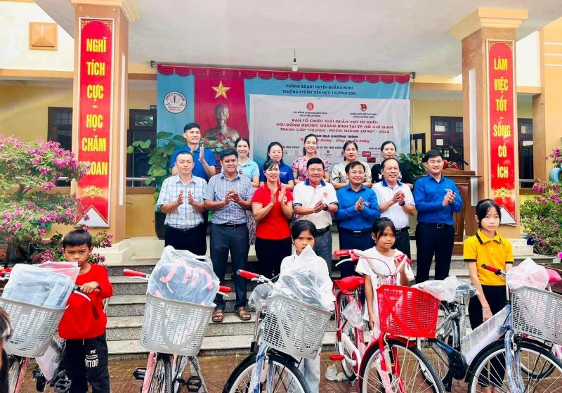 Hoạt động Hội không dừng lại ở TP Hồ Chí Minh quê hương thứ hai, mà luôn hướng về Quảng Bình thân yêu. Chương trình “Xe đạp yêu thương cùng em đến trường”, thông qua Tỉnh đoàn Quảng Bình, BTC Giải Tennis của HĐH Quảng Bình tại TPHCM đã trao 190 xe đạp cho học sinh có hoàn cảnh khó khăn tại 8 huyện, thị xã, thành phố. Hội ghi nhận sự ủng hộ và tham gia nhiệt tình của anh Lê Khắc Tiến (Đồng Hới), GĐ Cty thiết bị PCCC Thăng Long và anh Đinh Xuân Hùng (Bố Trạch), Giám đốc Công ty nước uống Fujiwa. Ngoài ra, BTC còn tặng thêm cho Hội bảo trợ người khuyết tật và trẻ mồ côi tỉnh 20 chiếc xe.